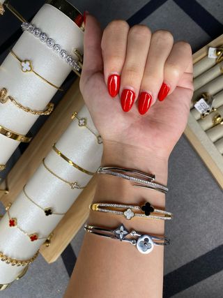 Elegante conjunto de pulseras de acero inoxidable con detalles en bisutería. Puedes elegir cual y cuantas piezas te llevas. El precio depende de que pieza te lleves y de cuantas. - Diseño moderno y versátil. - Combinación de acabados plateados y dorados. - Adornos con motivos florales y de trébol.