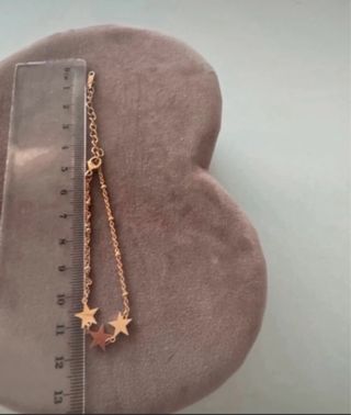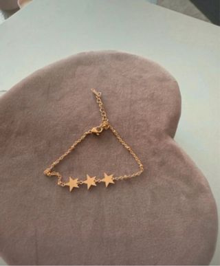 Elegante pulsera con un diseño delicado de tres estrellas. - Fabricada en acero inoxidable. - Acabado en baño de oro rosa. - Cadena fina con cierre de mosquetón.