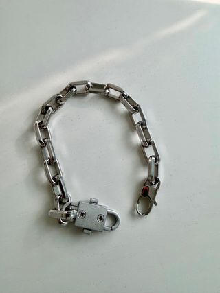 Pulsera con eslabones de estilo robusto. - Eslabones de metal plateado. Acero - Cierre de mosquetón y seguro adicional.
