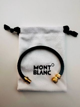 Pulsera Montblanc de piel trenzada negra con cierre magnético y detalles en acero dorado. Como nueva. - Cierre magnético. - Acabado en acero dorado.