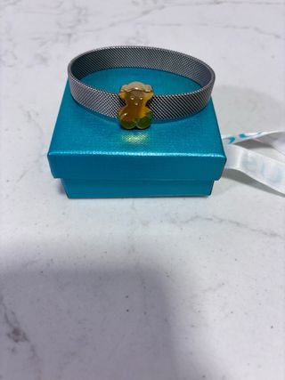 Pulsera de la marca Tous con diseño de malla en acero y cuerre de oso en oro. - Pulsera de malla. - cierre de oso. - Materiales: Acero y oro.