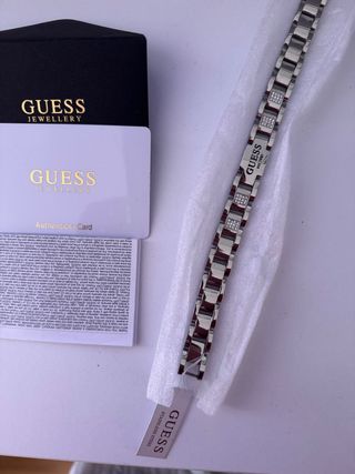 Elegante pulsera de la marca Guess, con un diseño moderno y detalles brillantes. Fabricada en acero inoxidable. - Diseño con eslabones. - Detalles de cristales. - Nueva sin estrenar con etiqueta, embalaje y tarjeta de autenticidad.