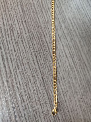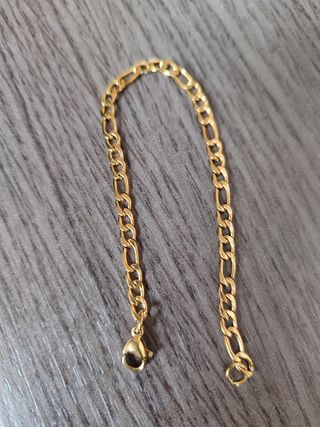 Elegante pulsera con un diseño delicado y brillante. - Tres hilos finos. - Cuentas doradas de diferentes tamaños. - Acero inoxidable