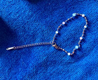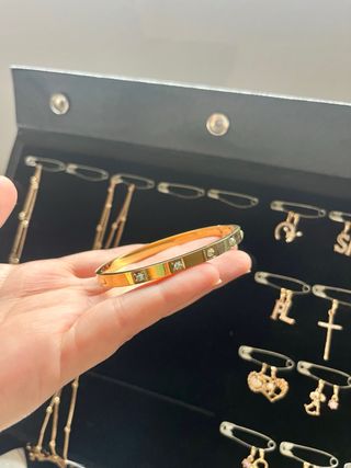 pulsera con detalle y cierre de acero. Mide 18'5 centímetros estirada.