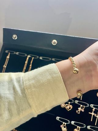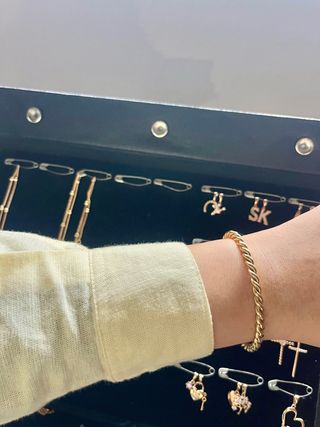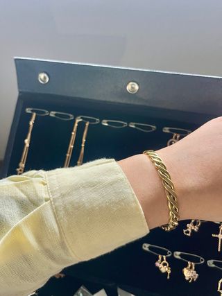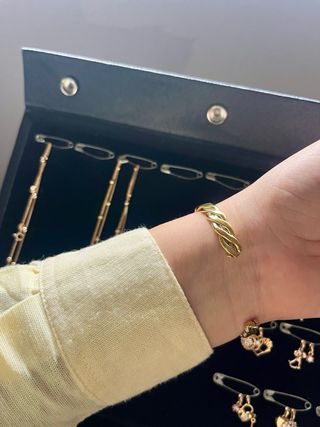 Elegante pulsera con un diseño trenzado. - Acabado dorado brillante. - Estilo clásico y versátil. - Acero inoxidable