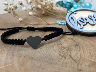 Elegante pulsera con cordón negro y un detalle central en forma de corazón de acero. Un accesorio sencillo y moderno. - Mas colores - Diseño de corazón. - Acabado en acero.