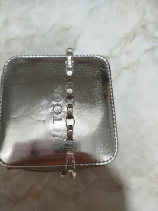 Conjunto de pulsera y anillo de plata de la marca Tous. - Diseño moderno y elegante. - Acabado plateado brillante.se envía en su caja y bolsa