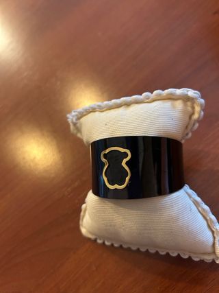 Pulsera de la marca Tous con un diseño elegante. - Acabado en negro brillante. - Detalle de oso dorado. - Montura dorada.
