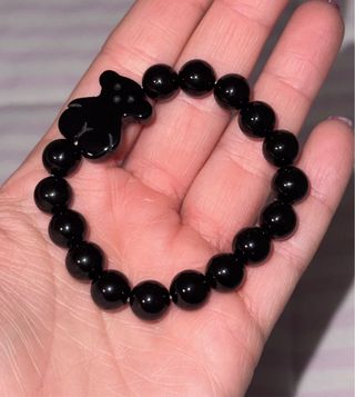Pulsera elástica con cuentas negras y un charm de oso. - Diseño icónico de la marca. - Cuentas lisas y brillantes.