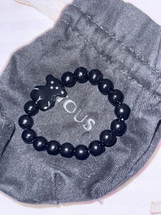 Elegante pulsera de la marca Tous con un diseño clásico. - Cuenta con un charm en forma de oso. - Elaborada con cuentas negras brillantes.
