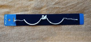 Elegante pulsera con diseño de cisne. - Acabado plateado brillante. - Detalle de cisne central. - Cadena ajustable.