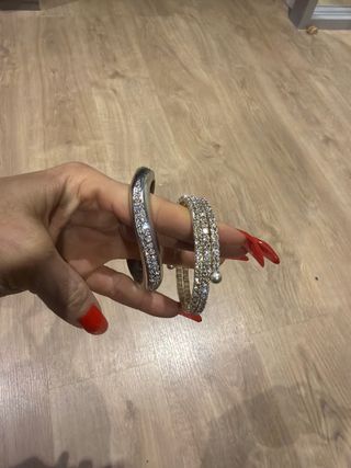 Pulseras con brillos plateadas