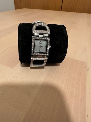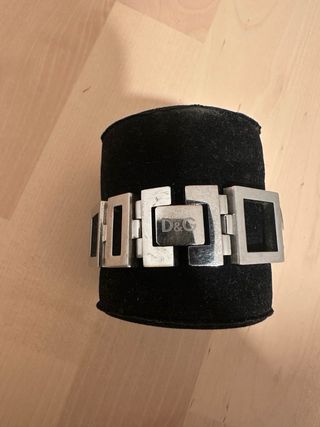 Elegante reloj de Dolce & Gabbana con un diseño llamativo. - Bisel adornado con brillantes. - Esfera cuadrada. - Pulsera de eslabones plateados.