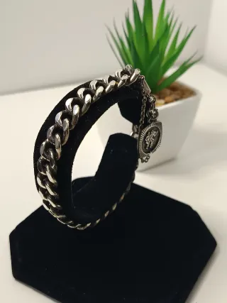 Pulsera cuero con cierre plateado
