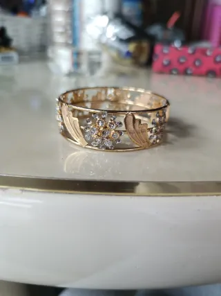 Elegante brazalete de oro de 18 quilates con un diseño intrincado. - Material: Oro 18k - Acabado brillante - Diseño calado con motivos florales Se vende por pieza, no por gramo. 7,9 gramos 5,7cm