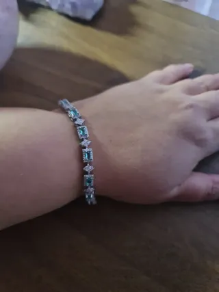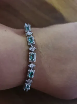 Elegante pulsera con turmalinas verdes y detalles plateados. - Diseño con piedras rectangulares. - Acabado brillante.