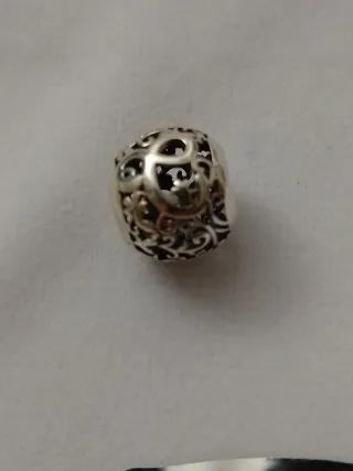 Colgante de plata de ley con un diseño intrincado y detallado, perfecto para personalizar tu pulsera. - Diseño calado con motivos ornamentales. - Acabado plateado brillante.