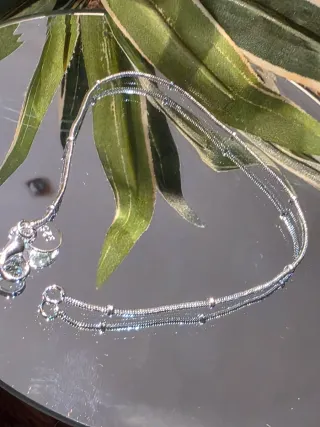Elegante pulsera plata, perfecta para combinar con tus colgantes favoritos.Largo20cm. - Diseño delicado con pequeñas cuentas. - Cadena fina y brillante.