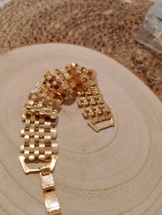 Elegante pulsera de oro de 18 quilates. Un accesorio llamativo y de alta calidad. - Diseño de eslabones entrelazados. - Acabado brillante.