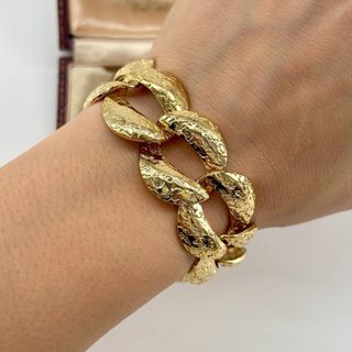 Pulsera de eslabones grandes con un diseño texturizado que imita la piel. - Acabado brillante. - Estilo llamativo y moderno. - Peso ligero.