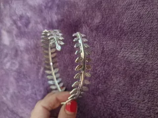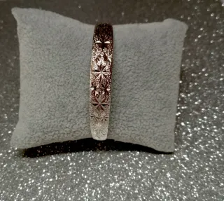 Pulsera rígida plateada con diseño floral