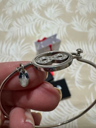 Elegante pulsera tipo caña de la marca Lotus. - Diseño abierto y ajustable. - Acabado brillante. - Incluye charm con logo. - Hago envíos.