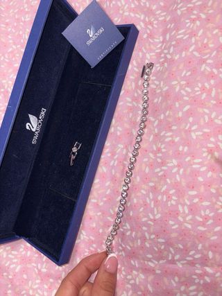 Elegante pulsera de la marca Swarovski, con un diseño clásico y brillante. - Elaborada en plata. - Adornada con cristales blancos. - Incluye caja original y certificado.