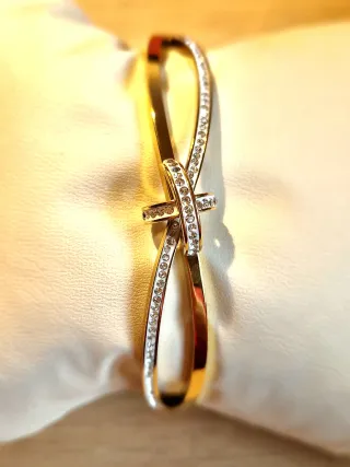 Elegante pulsera con un diseño cruzado. - Acabado metálico brillante. - Estilo moderno y minimalista.
