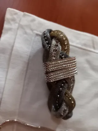 Pulsera dorada con detalles plateados y brillantes