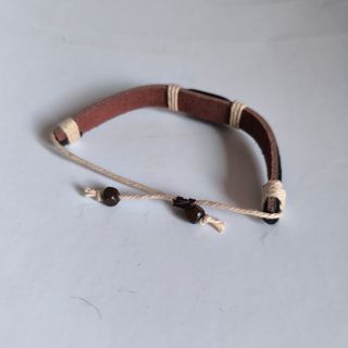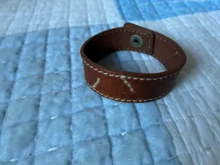 Se vende pulsera artesanal de cuero, con pieza central decorativa de elefante, símbolo de protección, fuerza y buena suerte. Características: 🐘 Motivo elefante en la pieza central 🧵 Pulsera de cuero en tonos marrón y negro 🔗 Cierre ajustable con cordón y cuentas de madera 🤎 Estilo artesanal / boho / étnico 👌 Apta para muñeca de adulto (ajustable) Estado: ✔️ Buen estado general ❗ Ligeras señales normales de uso en el cuero (ver fotos) ❌ Sin embalaje original 📸 Las fotos forman parte de la descripción y muestran el estado real.