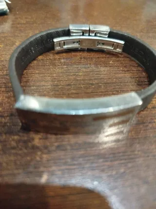 Pulsera de cuero con hebilla metálica. - Diseño ajustable. - Material de cuero. - Hebilla de metal. Solo ha que limpiarla