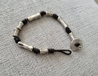 Pulsera de cuero genuino con un diseño de estilo bohemio color negro - Elaborada con cuero auténtico. - Adornada con detalles metálicos plateados y elementos de madera. - Cierre seguro y ajustable. ¡¡Mira en mi perfil, tengo granvariedad de artículos de regalo y bisutería. Todo nuevo a estrenar!! NO SE HACEN ENVIOS NI RESERVAS. PAGO EFECTIVO.