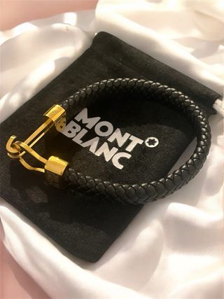 Pulsera de cuero trenzado negro con cierre de acero inoxidable, estilo Montblanc. Nueva, sin usar, se entrega con funda. Muy elegante y combinable para uso diario o regalo. 📏 20 cm 🧵 Material: cuero + acero inoxidable ✨ Estado: nueva