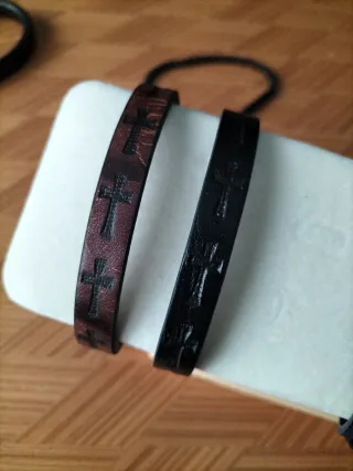 Pulsera de cuero con un diseño de cruces grabadas. Disponible en dos colores. - Material: Cuero. - Diseño: Cruces grabadas.