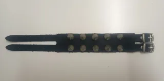 Pulsera de cuero con un diseño moderno y detalles metálicos. - Material: Cuero. - Cierre con remaches. - Estilo unisex.