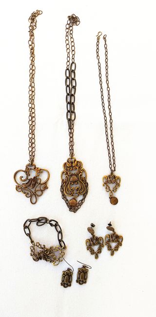 Gran lote de bisutería de moda fabricada en Menorca. Ideal para tiendas, artesanos, mercados, reventa o regalo. Todo NUEVO. El lote incluye: ✅ 66 pendientes ✅ 31 collares Grandes ✅ 34 collares pequeños ✅ 6 Anillos ✅ 8 pulseras ✅ 5 productos de cabello Material: Zamak de alta calidad, surtido en baños de plata vieja, latón óxido y cobre. Están esmaltadas a mano. Estilo único, artesanal y muy resistente. 📦 Perfecto para negocio o reventa Se vende todo junto, no por separado. Puedo enviar a toda España. - Acabados metálicos - Cuerdas de hilo trenzado/cuero/cadena Dorado, ocre, plateado