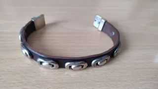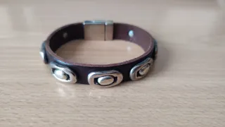 Pulsera de cuero para hombre en color marrón claro. En material zamak. Cierre imantado. Medida 20 mm de ancho y largo hace 21 cm. Nueva, pero con algún desgaste, como se ve en el cierre.