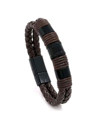 Pulsera de cuero negro con trenzado cierre metal