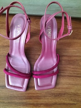 Muy elegantes. Usadas solo unas horas para un evento. Super cómodas. Diseño de punta cuadrada. Combinado lila/morado y fucsia. Empeine, forro y plantilla de cuero. Tacón de 10cm. Precio original 89 eur (rebajas 50 eur)