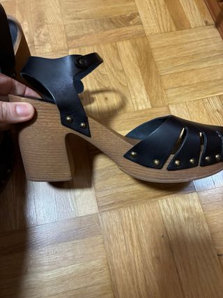 Elegantes sandalias de tacón alto. buenisima calidad, ante y piel y suela de cuero - Material exterior de ante. - Detalles en piel. - Cierre de pulsera al tobillo. - Plataforma delantera.