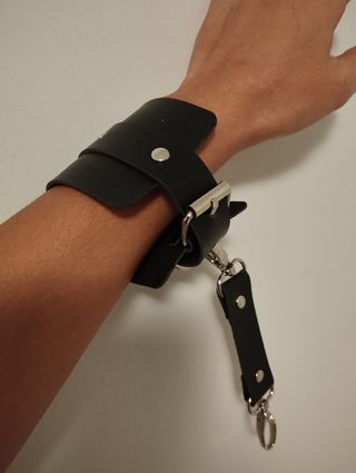 Accesorios Erotic ajustable para las muñecas de la mano confeccionado con cuero Vegano, lleva tachas y hebillas 100% antialergicas