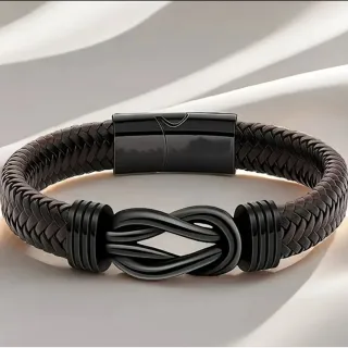 ♥️ ENVIO GRATIS en pedidos de más de 20 € (pregúntame y te lo activo por privado) Pulsera de hombre con diseño de nudo infinito, fabricada en cuero color negro trenzado con costuras blancas visibles, y acero inoxidable de alta calidad cuenta con un cierre magnético para un ajuste seguro. El nudo infinito, a veces llamado nudo de amor, es un símbolo náutico clásico que representa el amor eterno, la unidad o la amistad. Tamaño, 21 cm de largo Tamaño del nudo de acero, 4'3 x 1'5 cm.