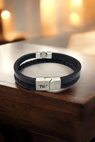 Pulsera de cuero trenzado con un elegante cierre de plata. - Diseño trenzado en cuero negro. - Cierre metálico plateado.