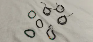 Conjunto de pulseras con estilo boho, energético y casual. Incluye pulseras de cuentas naturales, madera, piedra tipo volcánica, malakita sintética y modelos ajustables de cuero trenzado. Son ligeras, cómodas y perfectas para combinar, regalar o usar a diario. Pack a 16€. Pulseras de piedra: 3€ Pulseras de cuero: 3'50€