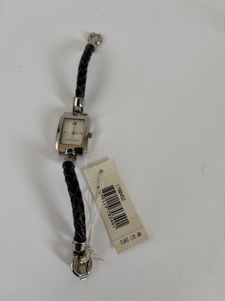 Elegante reloj Tommy Hilfiger con pulsera de cuero trenzado. - Diseño rectangular de la caja. - Detalles plateados en la pulsera y la caja. - Cierre de seguridad.