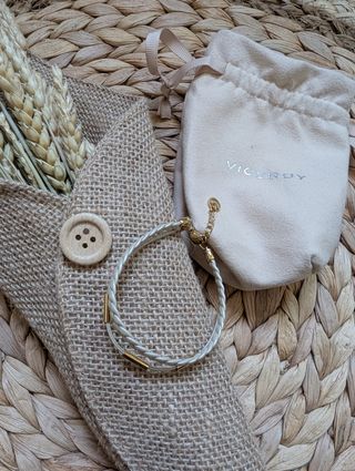 Preciosa pulsera Viceroy de cuero trenzado. Se encuentra en perfecto estado. - Diseño elegante y sofisticado. - Combina cuero beige con detalles dorados. - Cierre de tipo mosquetón.