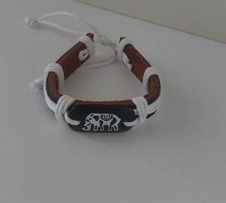 Pulsera de cuero con un diseño de elefante. - Material de cuero. - Detalle de elefante en la parte central.