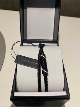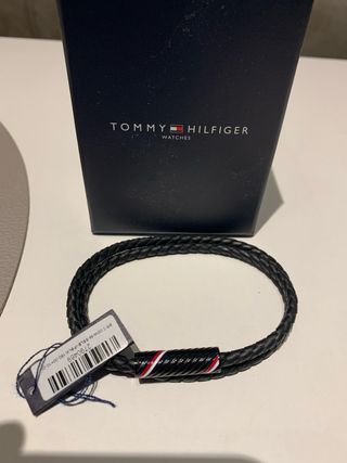 Pulsera Tommy Hilfiger de cuero y renzada negra