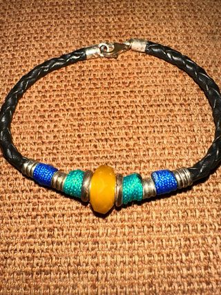 A estrenar. Pulsera de cordón de cuero y plata con cristal amarillo. Original y muy bonita.