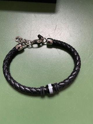 Pulsera redonda de cuero auténtico trenzado, totalmente nueva. Su cierre metálico inmantado proporciona mayor seguridad y un ajuste rápido, ideal para el día a día o como complemento discreto pero con personalidad. 🖤 Diseño trenzado en cuero negro de calidad 🧲 Cierre magnético firme y fiable 📏 Diámetro de 17,5 cm — ajustada a muñecas pequeñas/medianas 🎁 Perfecta para regalar o renovar tu estilo